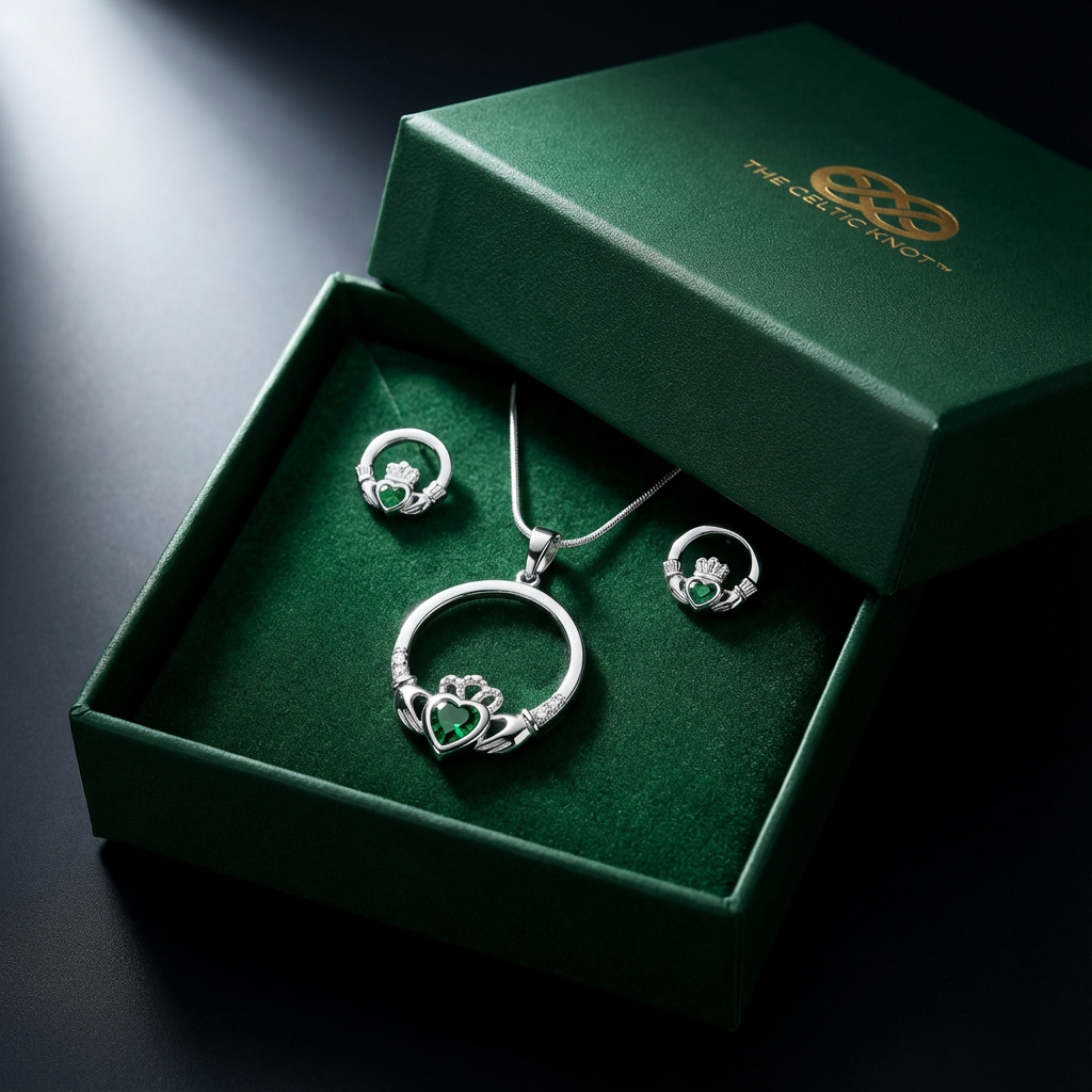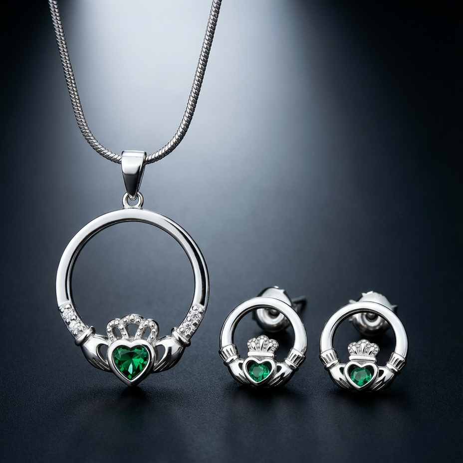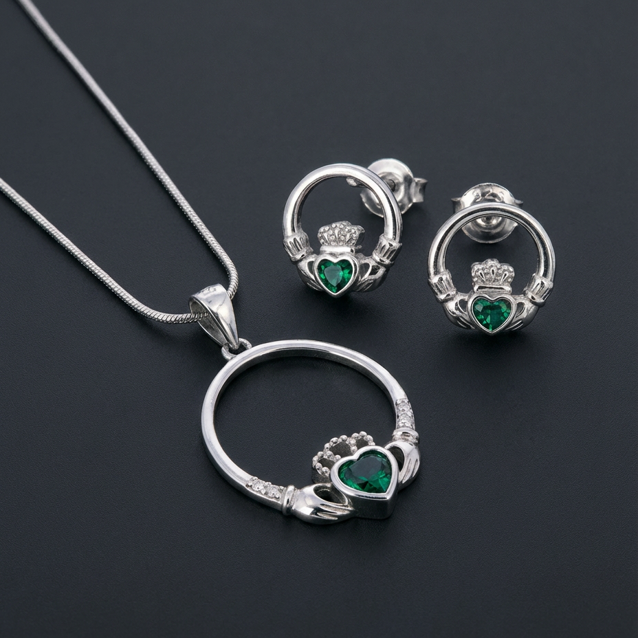 - Includes: Claddagh Earrings, Claddagh Pendant with Chain