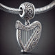 Designed in luminous sterling silver with 18K white gold plating, this charm might feature a small teardrop harp-like musical note entwined with Celtic knotwork – symbolizing the banshee’s tears turned to music.